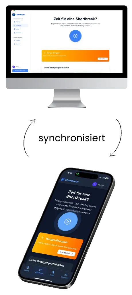 Die Shortbreak App ist eine Investition in die Gesundheit und Produktivität eurer Mitarbeiter:innen! Mit Einheiten von nur 2-3 Minuten bietet Shortbreak maximale Bewegungseffekte für eine nachhaltige Aktivitätssteigerung und verbesserte Gesundheit.